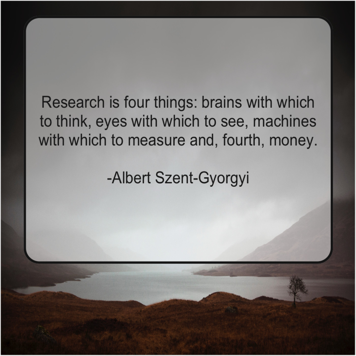 “Research is four things: brains with which to think, eyes with which to see, machines with which to measure and, fourth, money.”
