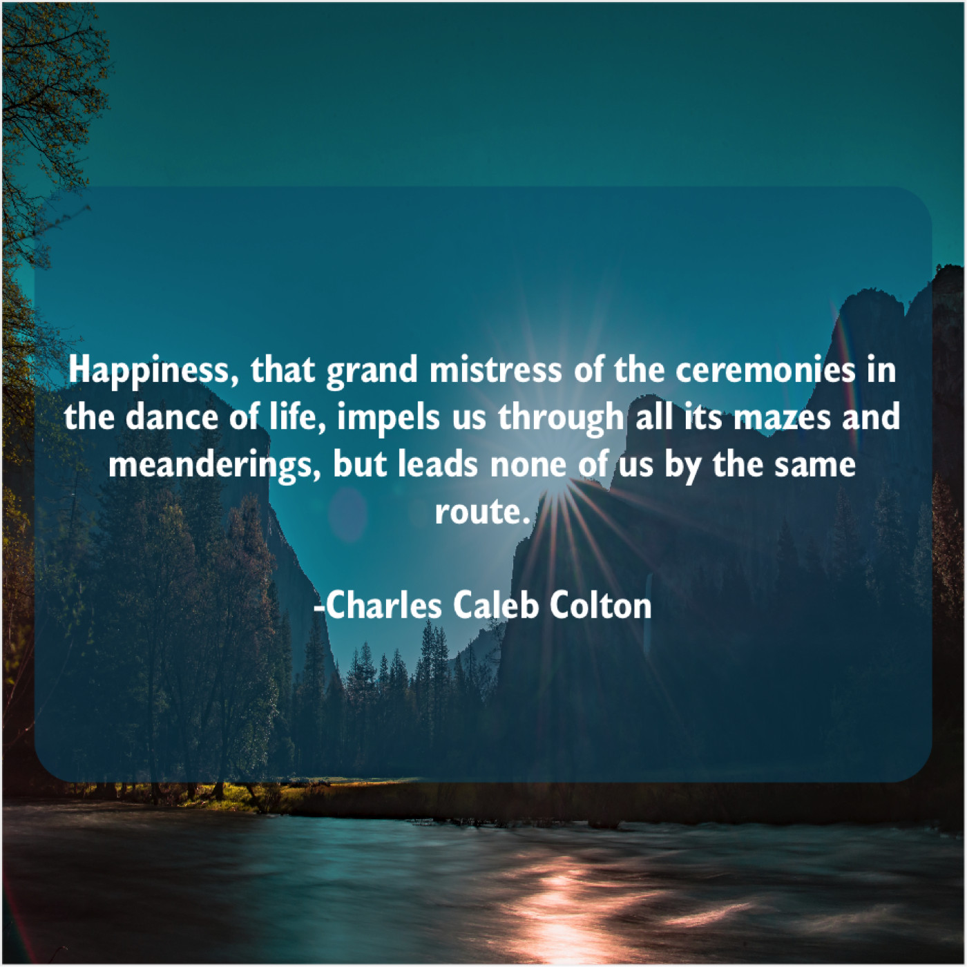 “Happiness, that grand mistress of the ceremonies in the dance of life, impels us through all its mazes and meanderings, but leads none of us by the same route.”
