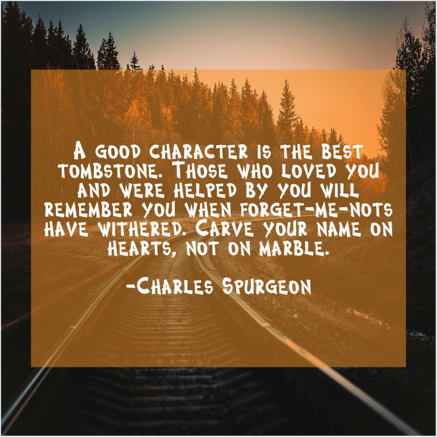 “A good character is the best tombstone. Those who loved you and were helped by you will remember you when forget-me-nots have withered. Carve your name on hearts, not on marble.”