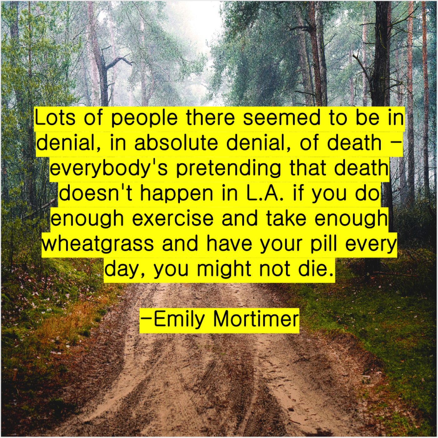 “Lots of people there seemed to be in denial, in absolute denial, of death – everybody’s pretending that death doesn’t happen in L.A. if you do enough exercise and take enough wheatgrass and have your pill every day, you might not die.”