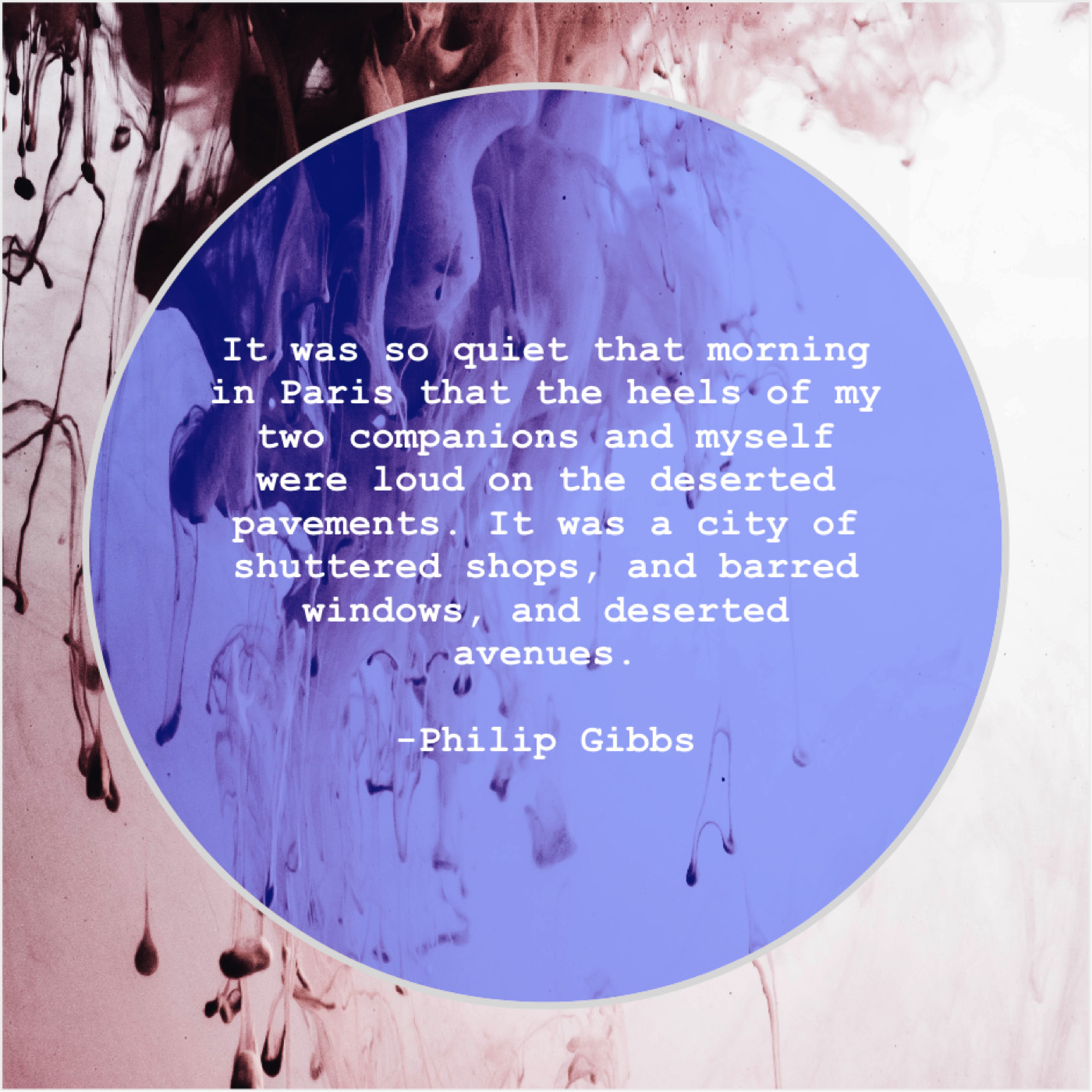 “It was so quiet that morning in Paris that the heels of my two companions and myself were loud on the deserted pavements. It was a city of shuttered shops, and barred windows, and deserted avenues.”