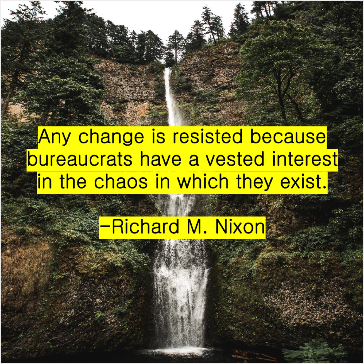 “Any change is resisted because bureaucrats have a vested interest in the chaos in which they exist.”