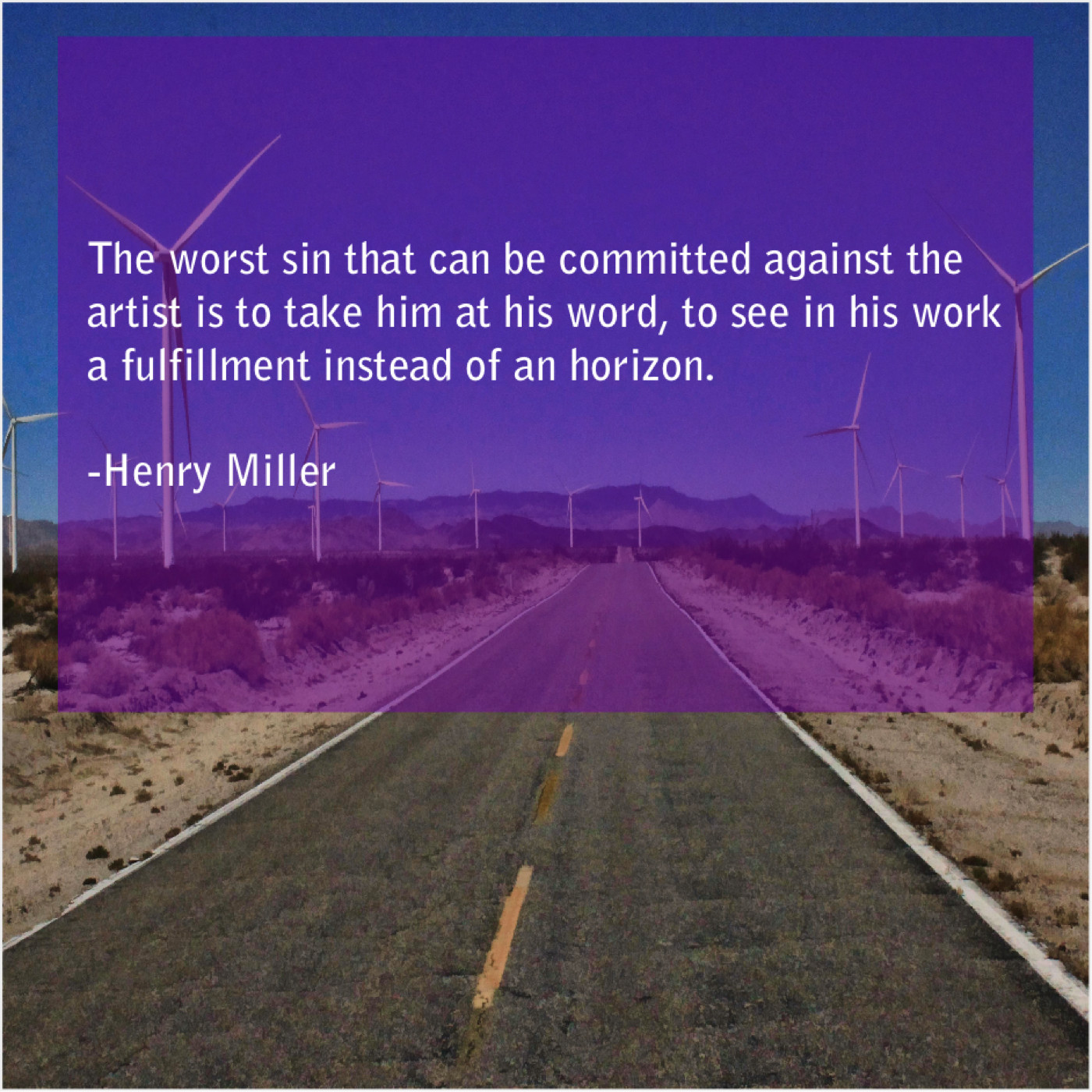 “The worst sin that can be committed against the artist is to take him at his word, to see in his work a fulfillment instead of an horizon.”