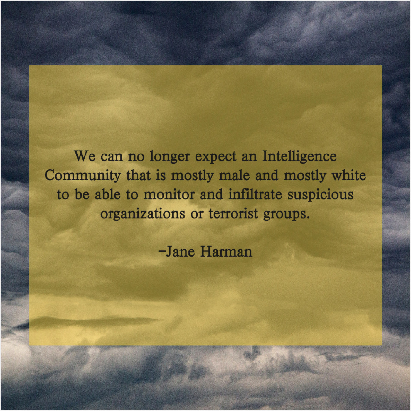 “We can no longer expect an Intelligence Community that is mostly male and mostly white to be able to monitor and infiltrate suspicious organizations or terrorist groups.”