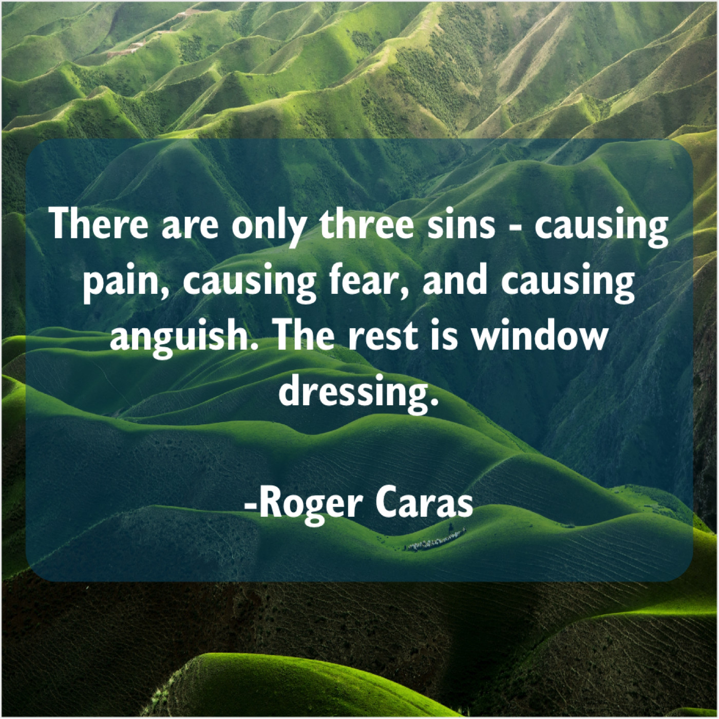 “There are only three sins – causing pain, causing fear, and causing anguish. The rest is window dressing.”