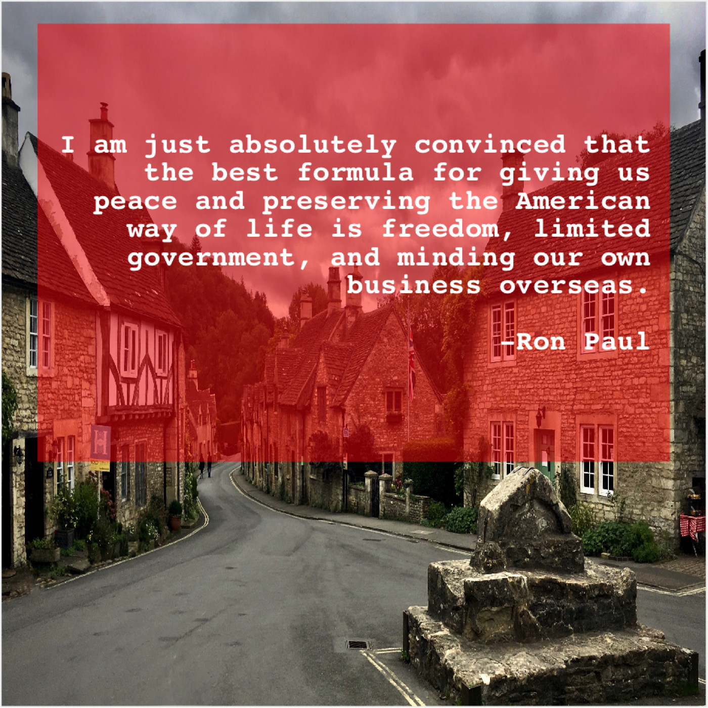 “I am just absolutely convinced that the best formula for giving us peace and preserving the American way of life is freedom, limited government, and minding our own business overseas.”